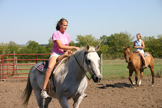 Ryli did the most riding. She wanted to ride outside the corral too, so she and Ken rode double on Frosty and took off around the pasture. She took a break and then was ready to ride again.