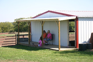 Diane, Grandma and Bubba enjoyed the barn porch. They could watch the shooting and see the horseback riders come by.