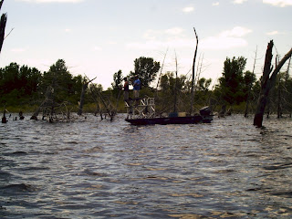 The archers like to fish carp so they modify their boats with these stands so they can look down into the water at a better angle.
