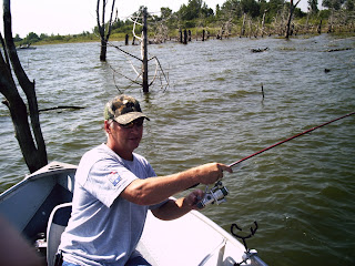 The more the merrier . . . there were 8 fisherman making the trip to Calamus for the August carp tournament. Ken said the water was pretty choppy Saturday morning. This is Chad and Dennis riding the waves.