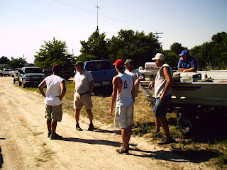 The more the merrier . . . there were 8 fisherman making the trip to Calamus for the August carp tournament. Ken said the water was pretty choppy Saturday morning. This is Chad and Dennis riding the waves.