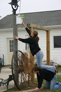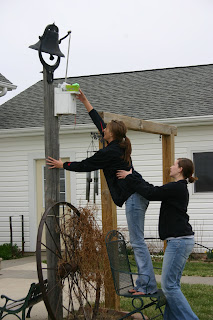 Emily decided to use a patio chair and Megan was the good big sister and made sure she didn’t fall.