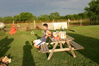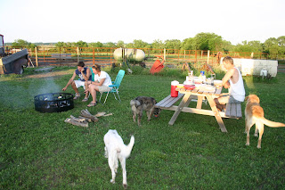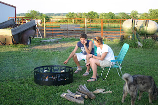THESE are pictures of our cookout. Ken bought me a fire ring for my birthday so we decided to have a wiener roast out by the corral. It was a great night for it and the hot dogs were good.