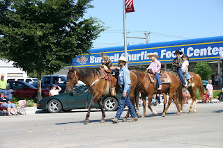 The gal in black on the pretty paint was selected as Miss Burwell Rodeo Friday night. On Saturday morning before the parade we always go the the Catholic Church for pancakes and sausage. All of the rodeo queens are there and Miss Burwell sat with us and talked awhile. We told her we would “wave” to her during the parade (you all remember how to do the parade wave, right?) There was a troop of boy scouts there and they were going around getting all of the rodeo queen’s pictures and autographs – it’s a whole different world out West and it’s great.