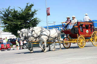 The gal in black on the pretty paint was selected as Miss Burwell Rodeo Friday night. On Saturday morning before the parade we always go the the Catholic Church for pancakes and sausage. All of the rodeo queens are there and Miss Burwell sat with us and talked awhile. We told her we would “wave” to her during the parade (you all remember how to do the parade wave, right?) There was a troop of boy scouts there and they were going around getting all of the rodeo queen’s pictures and autographs – it’s a whole different world out West and it’s great.