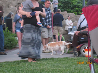 Since Ken was fishing at Calamus, I took Mom to Stransky Park in Lincoln to listen to Bobby Layne. (We took Carie and Steve to Stransky Park last year to listen to the Sandy Creek Pickers.) Last year there was a couple who brought their Irish Wolfhounds. This year they did’t show up, only a few small dogs and a couple of old, overweight beagles were there. It was a beautiful night and the music was great. St. James Methodist church was selling pies and having a rock-a-thon to raise money for their church. Along with that you can still get popcorn, slushies and cotton candy. They really had a good turn-out,.