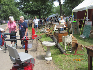 It wouldn’t be July 4th without a visit to the Fairbury Flea Market.  We went down early so we were there before 9:00 a.m.  The weather was perfect. We visited with people we don’t get to see very often and had a great lunch at Dennis and Carol’s with Nate, Cori and Milo (Lucas), which included homemade ice cream. It seemed like there were more vendors this year, maybe because the flea market could go for both the 4th and the 5th.  We also drove by Grandma and Grandpa’s old house.  It looks like the people who live there are taking good care of it.
