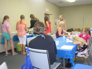 Kalie visiting with Ryli, Gabi and baby Addie before the shower began.