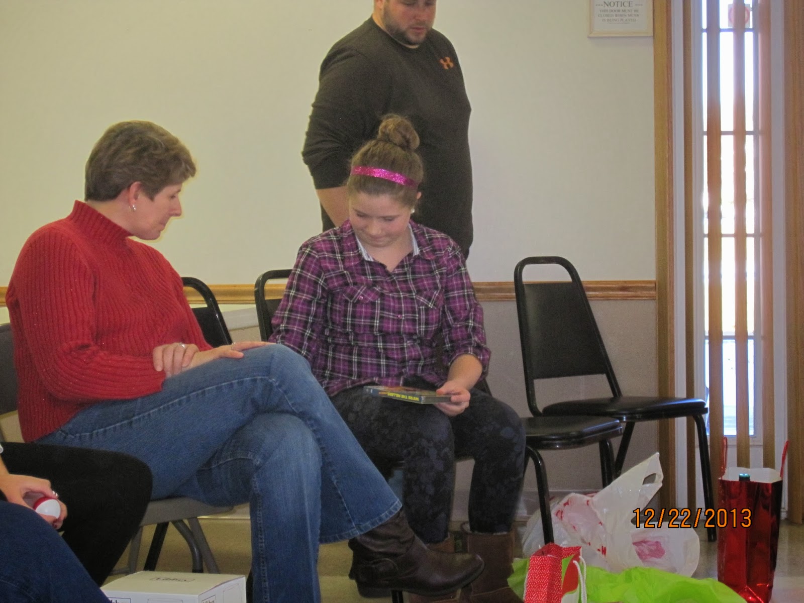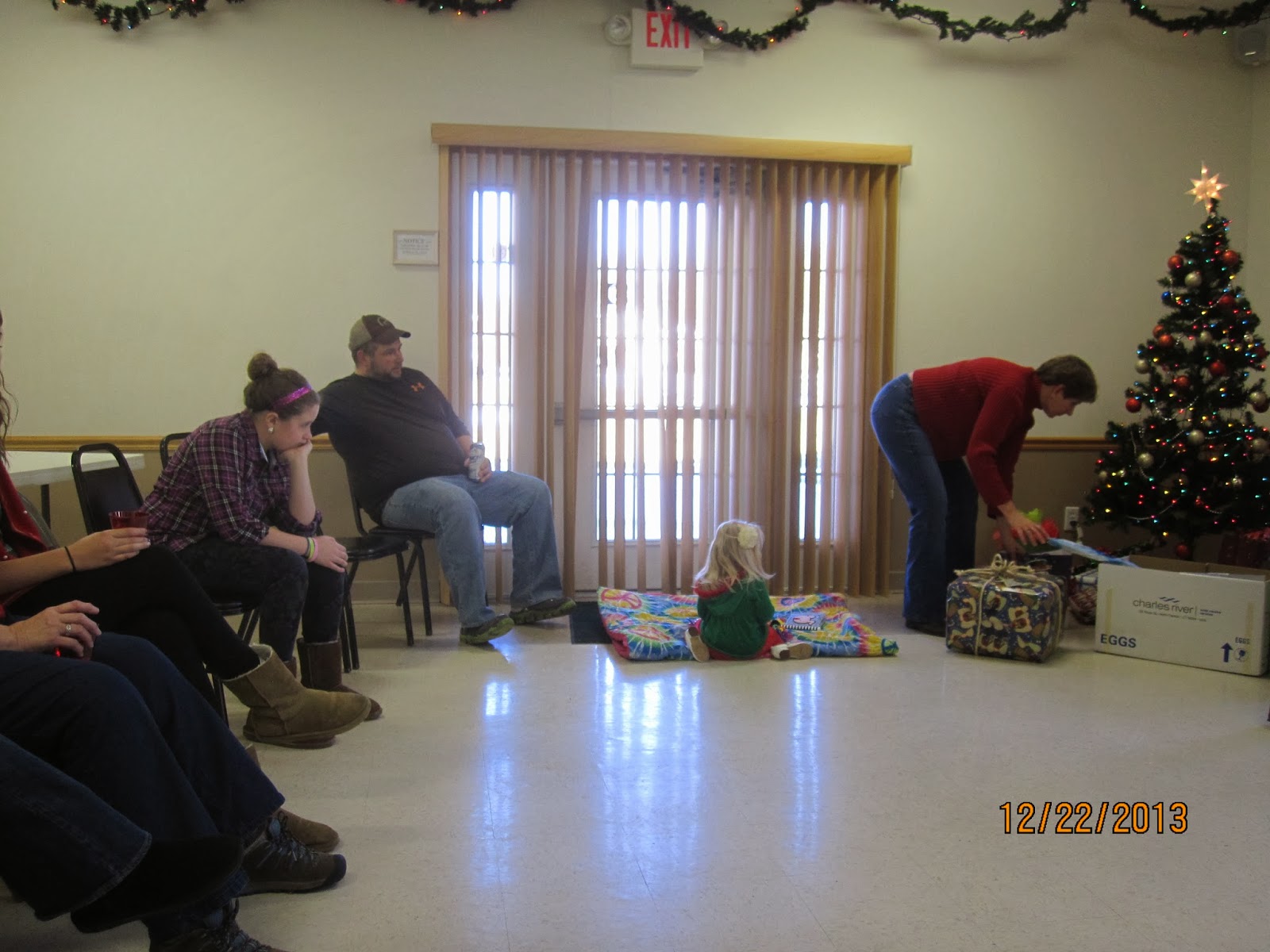This year Todd, Nancy and Ryli hosted the Steele Family Christmas at the Knight of Columbus Hall in Lincoln. That’s a very nice facility. It has a little bar area, a room with a fireplace where they set up tables and then a large room where we could have our gift exchange.