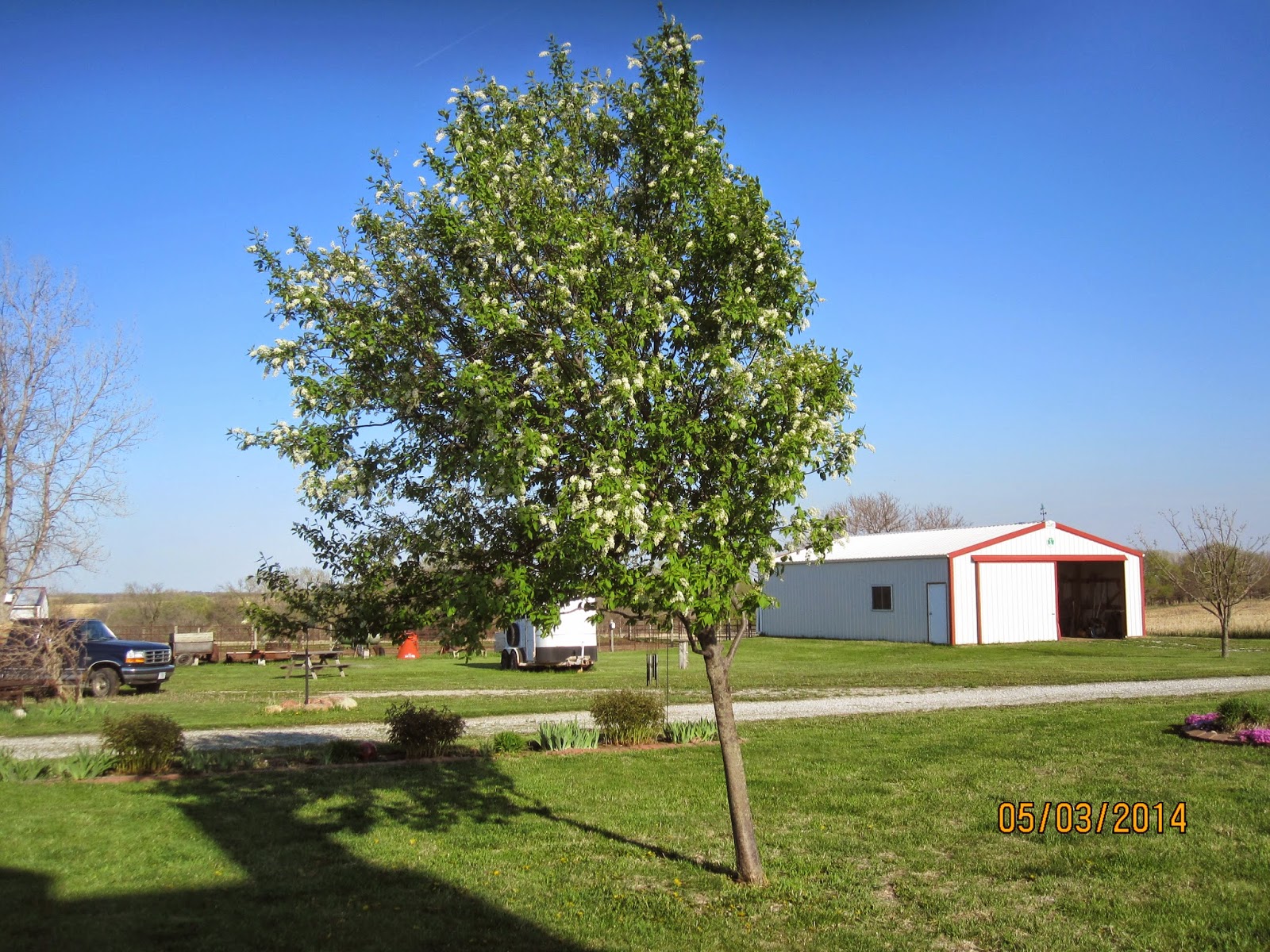 The place always looks like a park when Ken gets done mowing. It’s really beautiful. The Canada Cherry tree in the back yard is blooming and it smells so good.