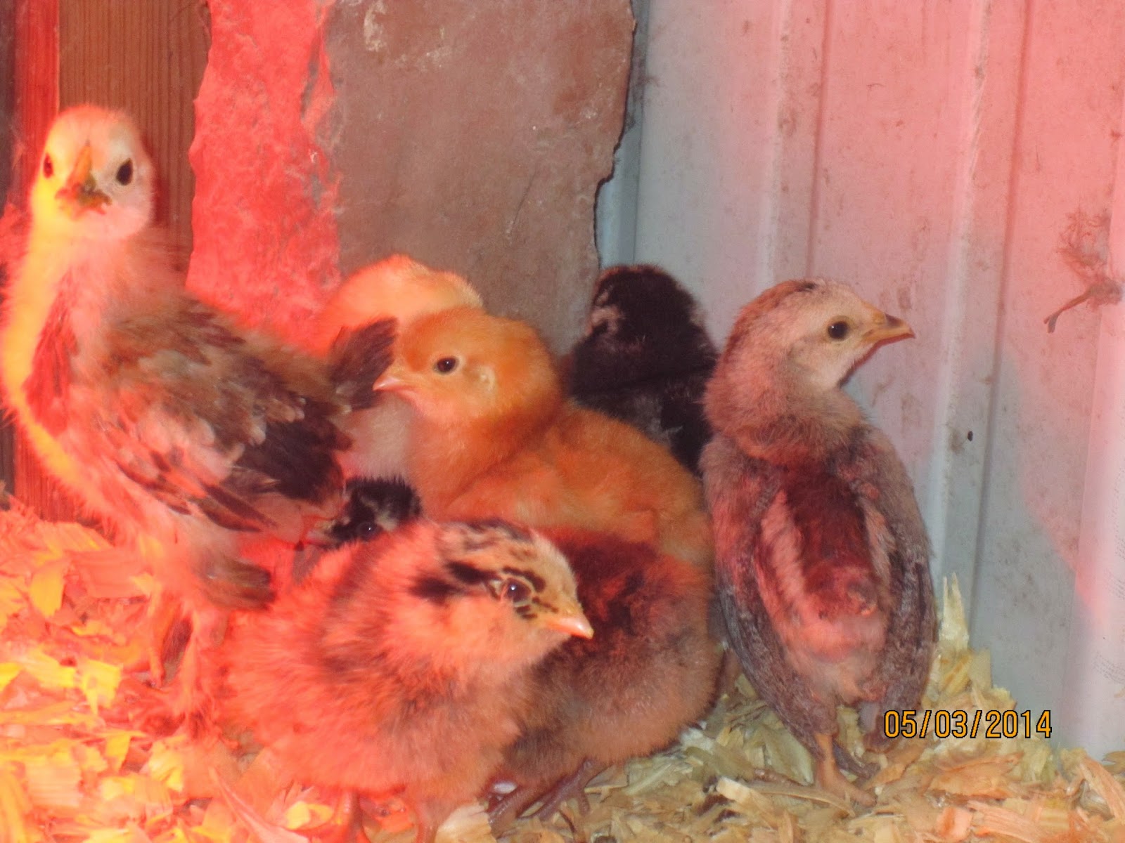 We got up early and headed to Beatrice Saturday morning. Since the weather is suppose to be warmer this next week, we decided it was a good time to get some more baby chicks. We thought a variety would be good and I wanted a couple of hens that would lay green and blue eggs. We got 2 Americana, 2 Rhode Island Reds, 2 Red Layers, 2 Silver Lace Wyndott and at the last minute Ken decided he wanted 2 Bantams. His gray bantam rooster is getting old and if something happens to him Ken won’t have anybody to fight with:) There’s no guarantee that one or both of the bantam’s he picked out will be a rooster. One of them that he picked out does have feathers on his feet.