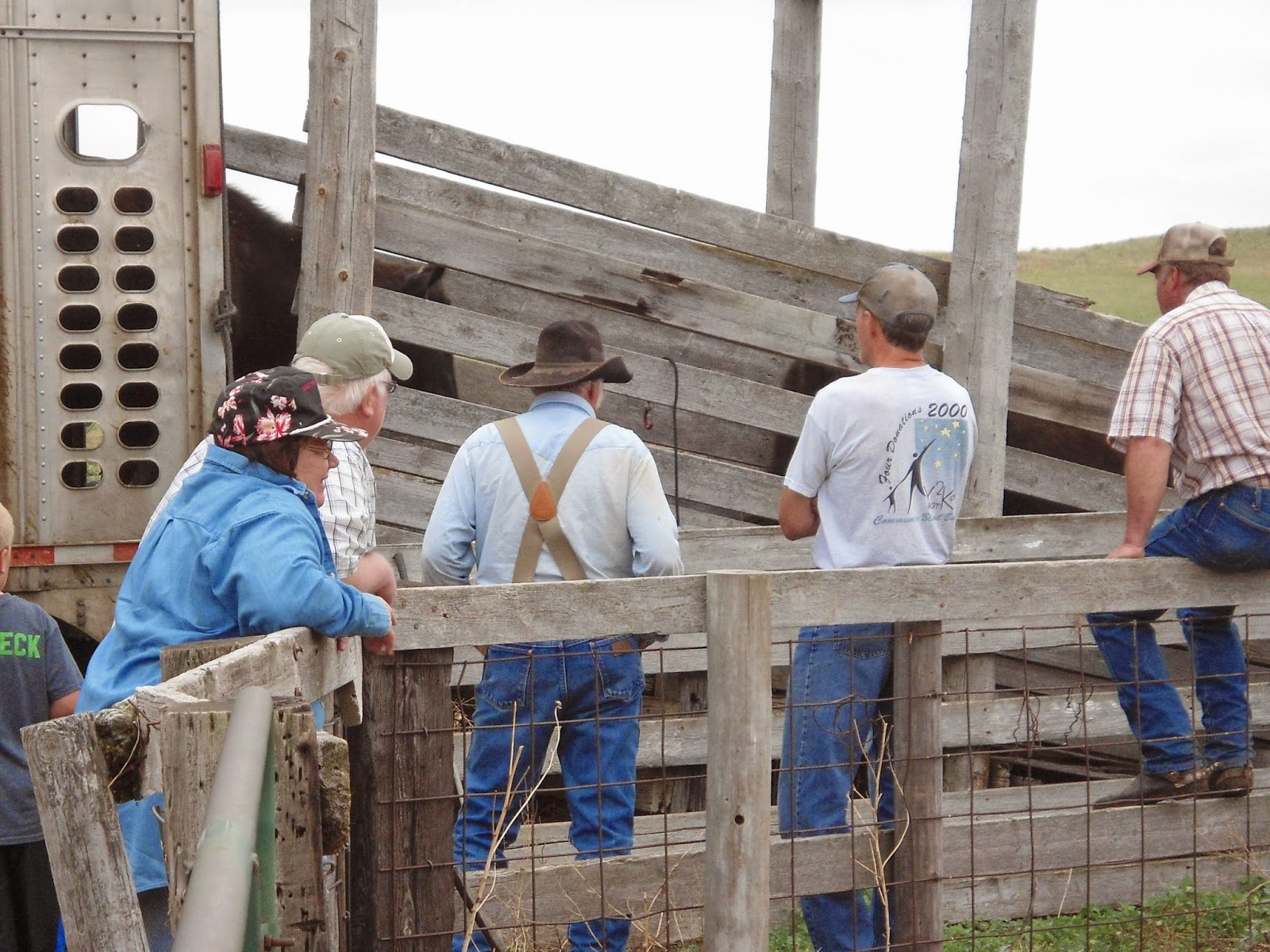 Judy talking with Terry. The guy in the cowboy hat is Marvin, these are his corrals. Ken and then Jim. |